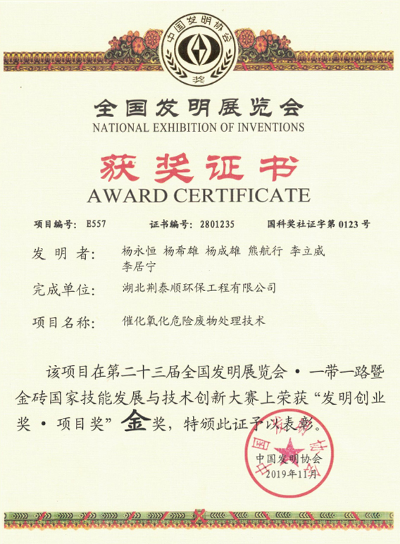• 全國(guó)發(fā)明展覽會(huì)金獎(jiǎng)證書